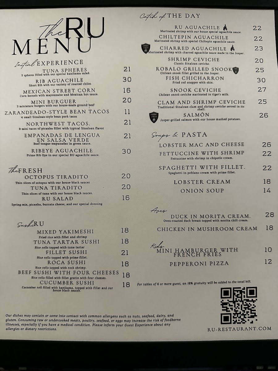 Welcome to RU RESTAURANT—a culinary gem nestled in McAllen, Texas. This vibrant eatery offers a menu that artfully blends traditional Mexican flavors with contemporary dining. You can savor an array of dishes, from the delightful Mini Hamburger with French Fries to the more adventurous Rib Aguachile and Snook Ceviche. Every bite is a testament to the chef's creativity and dedication.
